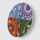 Water, fire, earth, and wind themed concentric circle mandalas come together in this colorful design. Each features a similar center and outer layer with the others being appropriate to the element.