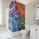 Water, fire, earth, and wind themed concentric circle mandalas come together in this colourful design. Each features a similar centre and outer layer with the others being appropriate to the element.