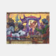 The Emperor’s New Clothes bold and colourful original art painted by our talented children’s illustrator, Traci Van Wagoner, shows the Emperor parading through town in all his new suit glory (with a curtain strategically covering his private parts) in his carriage being pulled by two beautiful horses, one black and one white. A man and his son and dog are watching with the boy pointing out that the Emperor has nothing on at all. Anyone who loves fantasy and fairy tales will love this artwork.