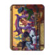 The Emperor’s New Clothes Original Fairy Tale Art painted by our talented children’s illustrator, Traci Van Wagoner, shows the Emperor parading through town in all his new suit glory (with a curtain strategically covering his private parts) in his carriage being pulled by two beautiful horses, one black and one white. A man and his son and dog watch from outside the decorative frame with the boy pointing out that the Emperor has nothing on at all. Anyone who loves fantasy and fairy tales will love this artwork.