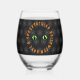 Pour your favourite witches brew or wine, into this Halloween themed glass. The design features a pair of green cat eyes over a black background, with a spiderweb pattern. The orange text reads, “HAVE A SPOOKTACULAR Halloween”. On the back there's an area for additional text.