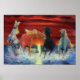 The four horsemen now lay under the horses' hooves. The horses freeing themselves suddenly from the men are a metaphor for nature surprising us. Adding another dimension to the four figures who classically symbolise the evils to come at the end of the world (conquest rides a white horse; war, a red horse; famine, a black horse; and plague, a pale horse) represents an allegory of hope (or not!) for the changes to come.