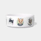 This is a heavy, durable bowl decorated with Tibbies of many colors, the perfect size for hungry/thirsty Tibs. The design is interesting and printing clear.