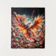 The Flarewing is a phoenix-like bird with wings spread wide, composed of vibrant, swirling patterns resembling flames and minerals. The bird appears to be rising or emerging from a bed of variously coloured and textured geodes, crystals, and gemstones. The background includes a starry sky, adding to the mystical and otherworldly atmosphere of the image. The intricate details and vivid colours make the image visually striking and captivating.