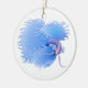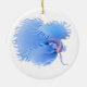 Original painting of a flaring blue Betta splendens or Siamese Fighting Fish by artist Carolyn McFann of Two Purring Cats Studio printed on a quality holiday ornament for tropical aquarium fish fans.