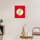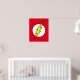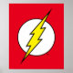 The iconic Flash Lightning Bolt Logo; a yellow lighting bolt running through a white circle on his classic bright red coloured background.