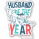 Fred Flintsone is "Husband of the Year"… as Wilma angrily drags him by the collar behind her.