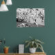 A black and white poster showing the flock of birds starting to fly