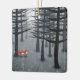 A lone wild red fox stands under pine trees in a dark forest. A landscape painting for animal, nature and wildlife lovers.