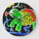 Funny, funky turtle painting in bright primary colours, with butterfly and flowers.