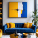 An invitation to contemplation, where vibrant yellow and deep blue meet in a poetic dialogue. Layers of paint and expressive strokes create textures that evoke movement and tranquillity simultaneously. White acts as a bridge between extremes, while subtle details add depth. Perfect for environments seeking inspiration and balance, it transforms spaces into creativity refuges. A piece that speaks directly to the soul, combining energy and peace in a single artistic gesture.