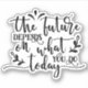 A great and powerful message for inspiration. The future depends on what you do today. It can be a small thing, but something will determine your future. Great gift for anyone who loves inspiration in all forms, especially to stay focused on a current goal or objective in life or at work.