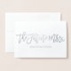A fun and creative way to let everyone know you're engaged. This design feature the phrase "the future Mrs." with a little heart at the end, written in a modern script in real foil. The inside is left blank so you can add your custom message.