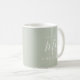 The future Mrs engagement gift coffee mug, a chic, modern and simple design with the text mrs in white elegant script on a pastel green background. Simply add your name and address. Exclusively designed for you by Happy Dolphin Studio. If you need any help or matching products please contact us at happydolphinstudio@outlook.com. We're happy to help you make your engagement party a wonderful event!