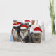 This hilarious and adorable Christmas card shows five sibling cats with Santa hats on their furry heads. These five cats are sitting on a table with their matching green eyes looking at you and wearing the cutest facial expressions. The message in this card says, "Did someone say presents?? Merry Christmas."