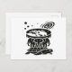 This postcard features a bold, symbolic illustration inspired by the ancient concept of geocentrism—the idea that the world rests at the center of the universe.