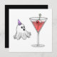 The little ghost with his purple party hat is ready for the Halloween party, which is a costume party with creepy cocktails.