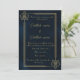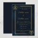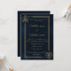 This sophisticated invitation template captures the timeless opulence of the Art Deco era. Set against a deep, textured blue background, the design features a striking geometric gold frame composed of clean, parallel lines. The highlight of the piece is the stylized, angular orchid motifs in the top-left and bottom-right corners, blending organic floral shapes with architectural precision. It is an ideal choice for high-end events, black-tie weddings, or gala evenings where luxury and understated elegance are the themes.