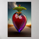 Surreal digital art poster features a translucent glass heart with intricate veins, on a muted road and sky background.