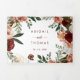 This gold rustic colourful floral wedding of trifold invitation is perfect for a simple wedding. The design features hand-painted marsala, pink, blush, burgundy and gold flowers with green leaves arranged into beautiful wreaths.