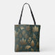 Celebrate the beauty of fall with the 'Golden Foliage' tote, which adds a touch of elegance to your everyday. A delicately engraved golden leaf pattern on a deep emerald green background creates a luxurious ambiance.