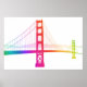 This artwork features the Golden Gate Bridge in San Francisco, California in a rainbow style design.