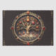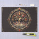 The golden tree of life of mysticism, the roots of light and flames of the soul. The golden tree of life, whose form radiates both power and elegance. The roots and branches are intricately intertwined, emphasizing the tree's symmetry and harmony. The branches spread widely, bearing luminous, gem-like fruits in vibrant reds and oranges, resembling sparkling jewels and lending the image an opulent touch. The tree stands against a deep dark background, complemented by a subtle, star-shaped sparkle. This soft glow lends the overall image a mystical atmosphere and highlights the tree's golden colouring.