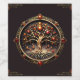 The golden tree of life of mysticism, the roots of light and flames of the soul. The golden tree of life, whose form radiates both power and elegance. The roots and branches are intricately intertwined, emphasizing the tree's symmetry and harmony. The branches spread widely, bearing luminous, gem-like fruits in vibrant reds and oranges, resembling sparkling jewels and lending the image an opulent touch. The tree stands against a deep dark background, complemented by a subtle, star-shaped sparkle. This soft glow lends the overall image a mystical atmosphere and highlights the tree's golden colouring.