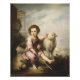 In a landscape with classical ruins that allude to the defeat of paganism, the Christ Child tends a lamb.