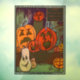 A window cling with a funny Halloween cartoon about a pumpkin family. The image, and background can be personalized. Original artwork by DBcartoons.