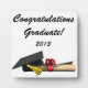 This image is of a black cap with a gold tassel and a diploma that is rolled up with a red ribbon tied around it. A great image for the Graduate. This Design can be fully customized by changing the backround or the text. The plaques come in a variety of sizes.