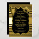 A luxurious shimmering gold on a dramatic black background with a Deco-style stripe gives the design a chic and glamourous look on the foil
