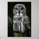 The Great Grey Owl - Portrait of a great grey owl standing on a log photographed looking directly at the camera.