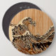 The Great Hokusai Wave Bamboo Wood Style 6 Inch Round Button