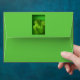 This photo of a green clover represents and celebrates St. Patricks Day. An irish holiday that is celebrated world wide. The photo is blurred in some of the photo. A green backround was added for visual effects. This envelope matches our greeting card.