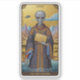A striking medieval sci-fi illustration of an extraterrestrial visitor draped in ornate Renaissance garments. Holding a gold-engraved tablet and framed in the symbolic style of a traditional tarot card, the design offers a sophisticated take on the unknown.