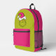 This fantastic, bold illustration is a close-up portrait of the Grinch in full mischievous mode! He has his signature sly grin and bright yellow eyes, but his look is updated with a large, fluffy Santa hat in a fun, unexpected pink/fuchsia color instead of the traditional red. This graphic is perfect for anyone who loves the holidays but embraces a non-traditional, delightfully grumpy, and colorful style!