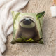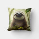 Cute throw pillow features AI generated digital art painting of an adorable happy sloth in the jungle