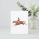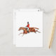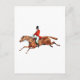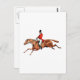 An illustration of an English hunter wearing a redcoat and riding a horse.