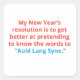 A humourous New Year graphic featuring the clever quote: "My New Year's resolution is to get better at pretending to know the words to Auld Lang Syne." Coral-pink and bright blue text pops against a crisp white background, creating a cheerful, playful design. Perfect for lighthearted collections, social media posts, or festive decorations celebrating wit, humour, and holiday fun.