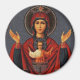 This icon of the Mother of God is called "The Inexhaustible Cup" - an image of the Virgin , originating from the Vedenskiy Vladychna monastery in Serpukhov, Russia . Known since 1878 and is revered in the Russian Orthodox Church as miraculous. This symbol goes back to the Orans pose often seen in the early Christian catacombs and churches . Mary is depicted praying with uplifted hands, and the Infant Jesus is standing in a chalice and blessing with both hands representing the Holy Eucharist. This icon of the Blessed Mother and Baby Jesus in the opinion of the faithful, while praying in front of it can be healed from many diseases, including alcoholism, drug addiction, depression, and various dependency issues.