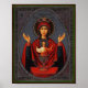 This icon of the Mother of God is called "The Inexhaustible Cup" - an image of the Virgin , originating from the Vedenskiy Vladychna monastery in Serpukhov, Russia . Known since 1878 and is revered in the Russian Orthodox Church as miraculous. This symbol goes back to the Orans pose often seen in the early Christian catacombs and churches . Mary is depicted praying with uplifted hands, and the Infant Jesus is standing in a chalice and blessing with both hands representing the Holy Eucharist. This icon of the Blessed Mother and Baby Jesus in the opinion of the faithful, while praying in front of it can be healed from many diseases, including alcoholism, drug addiction, depression, and various dependency issues.