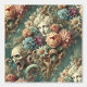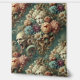 A procession of beauty and dread. The Infernal Motorcade blends regal statuesque faces and shrieking grotesques into a lush cascade of baroque florals—peach peonies, violet roses, and seafoam blooms unfurling like funeral banners in slow motion. Vines writhe, scrolls curve, and the macabre parades in elegance.