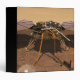 An artist's rendition of the InSight lander operating on the surface of Mars.The lander's science instruments look for tectonic activity and meteorite impacts on Mars, study how much heat is still flowing through the planet, and track the planet's wobble as it orbits the sun.