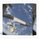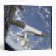 The Integrated Cargo Carrier in the grasp of the shuttle's remote manipulator system arm featured with STS-127.