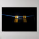 Backdropped by the blackness of space and the thin line of Earth's atmosphere, the International Space Station is seen from Space Shuttle Discovery as the two spacecraft begin their relative separation. Earlier the STS-119 and Expedition 18 crews concluded 9 days, 20 hours and 10 minutes of cooperative work onboard the shuttle and station. Undocking of the two spacecraft occurred at 2:53 p.m. (CDT) on March 25, 2009.