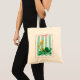 This drawing is of a golden harp, green top hat and a pipe. There sitting on a bed of clovers with pink flowers. To finish the design, a green and white striped backround along with a pink ribbon and bow border was added. This tote is available in assorted styles and sizes.