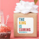 THE KING IS COMING – Faith-based Christian quote inspired by Bible verse Revelation 17:14 about Jesus Christ, featuring retro colour grunge-style graphic design.