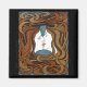 In this vintage art two women share a kiss, the art shows just their heads with their eyes closed, heads turned a bit with their hair stylized wildly mixed flowing both above and below their heads. Done in blues and browns primarily.
