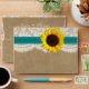 The Kraft, lace and sunflower collection is a stunning design featuring a lovely rustic Kraft paper effect background with a romantic vintage white lace effect trim finished with a stunning sunflower and a teal ribbon effect.